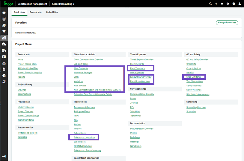 When localization changes are applied for English (United Kingdom), the following areas of Sage Construction Management are localized:
