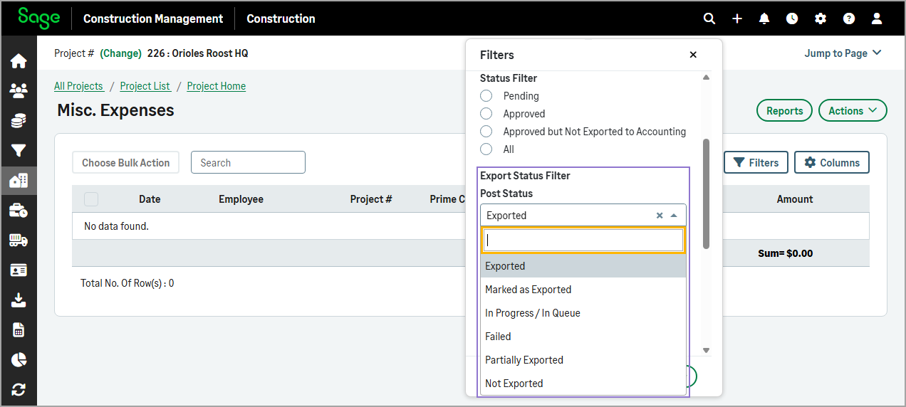 In addition, the Post Status has been added to the Filters menu of the listing page for the above items and transactions.