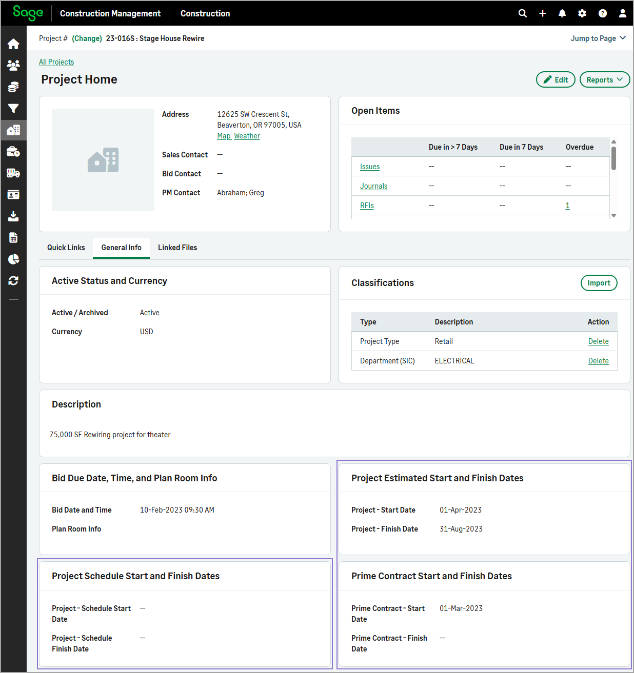 We've updated the General Info tab on the Project Home page to make project timelines clearer, more accurate, and easier to manage.