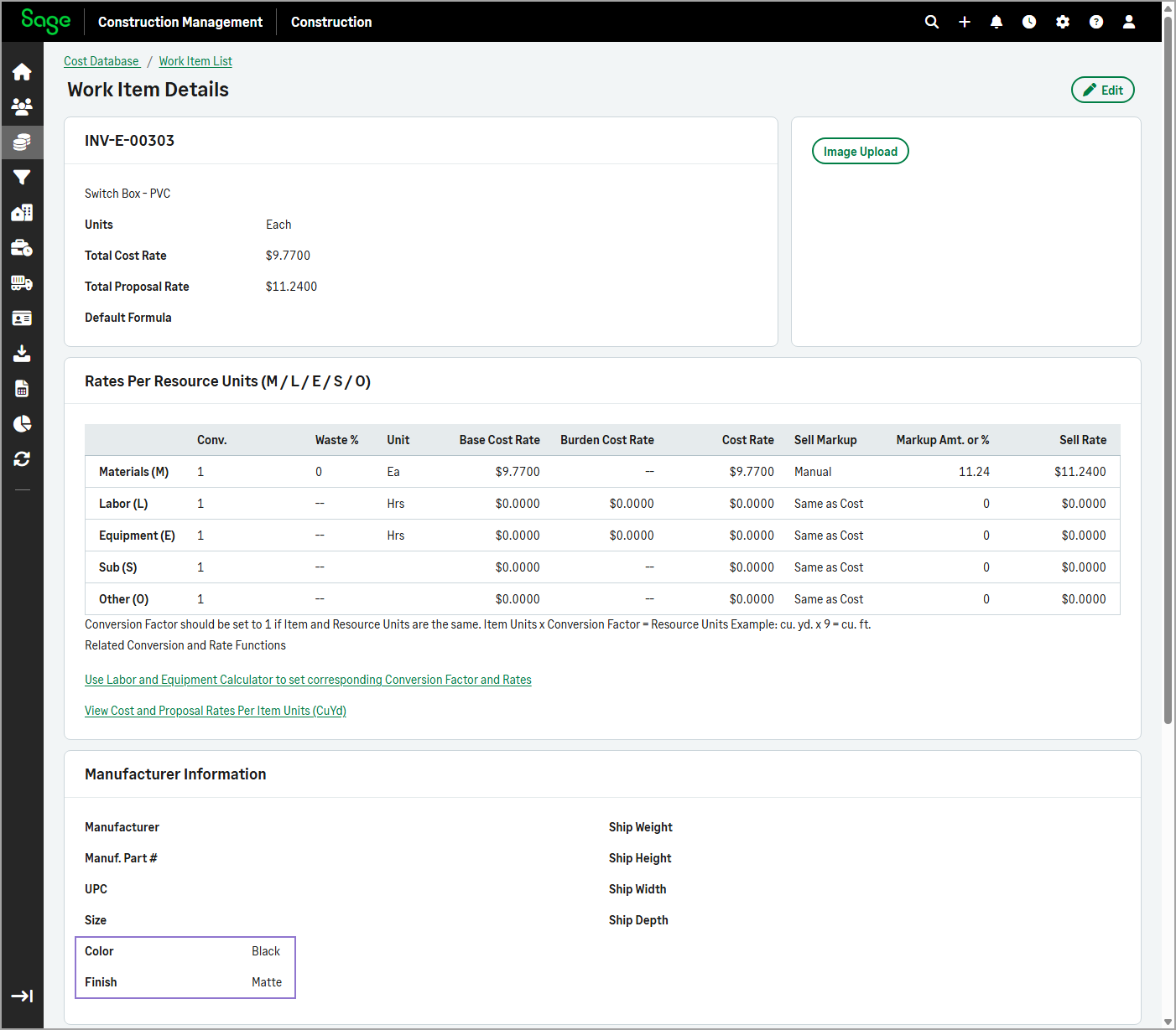 2. For work items, in the Cost DB open the work item and go to the Manufacturer Information section.